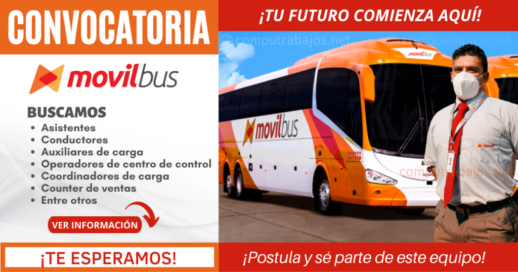 Si estás buscando una oportunidad laboral en el sector del transporte, ¡estás en el lugar correcto! En MOVIL BUS, una de las empresas líderes en el transporte de pasajeros, estamos emocionados de anunciar nuestra convocatoria 2023 para reclutar nuevos miembros para nuestro equipo. Si eres una persona apasionada por el servicio al cliente, te gusta conducir y tienes habilidades de comunicación excelentes, ¡te invitamos a postular ahora mismo! En este artículo, te brindaremos todos los detalles sobre nuestra convocatoria y cómo puedes formar parte de nuestro equipo. ¡Sigue leyendo para conocer más!